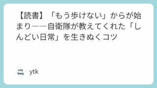 メンタル【読書】「もう歩けない」からが始まり――自衛隊が教えてくれた「しんどい日常」を生きぬくコツ 「もう歩けない」からが始まり――自衛隊が教えてくれた「しんどい日常」を生きぬくコツ-扶桑社BOOKS-ぱやぱやくん-ebook/dp/B0CJBSKJL4/ref=sr_1_1?__mk_ja_JP=カタカナ&crid=KAAIPE74C4... 2025.10.17メンタル読書