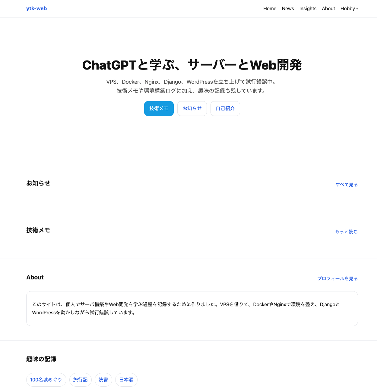 2つ目はブログサイト「blog.ytk-web.net」。こちらはWordPressを使って、技術的な記録や構築の過程、さらには趣味的な記事まで幅広く書き残していく予定です。丁度このブログですね。
