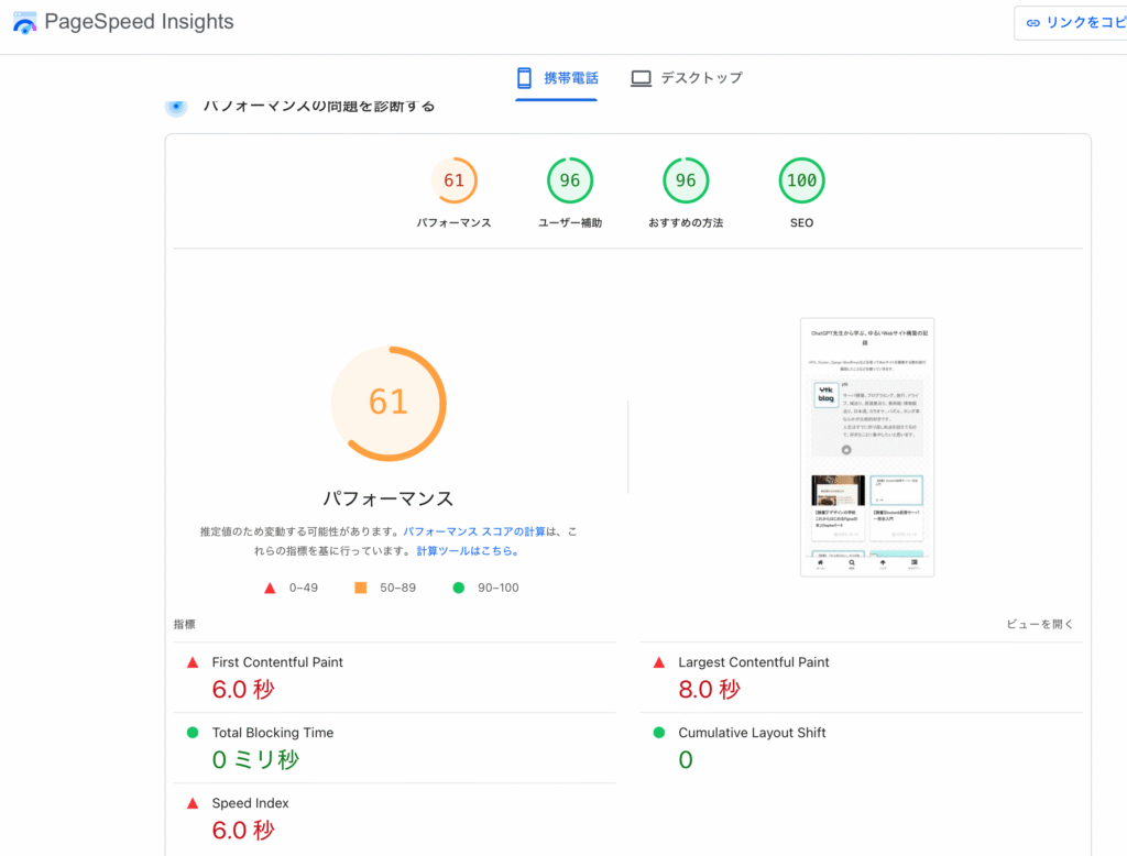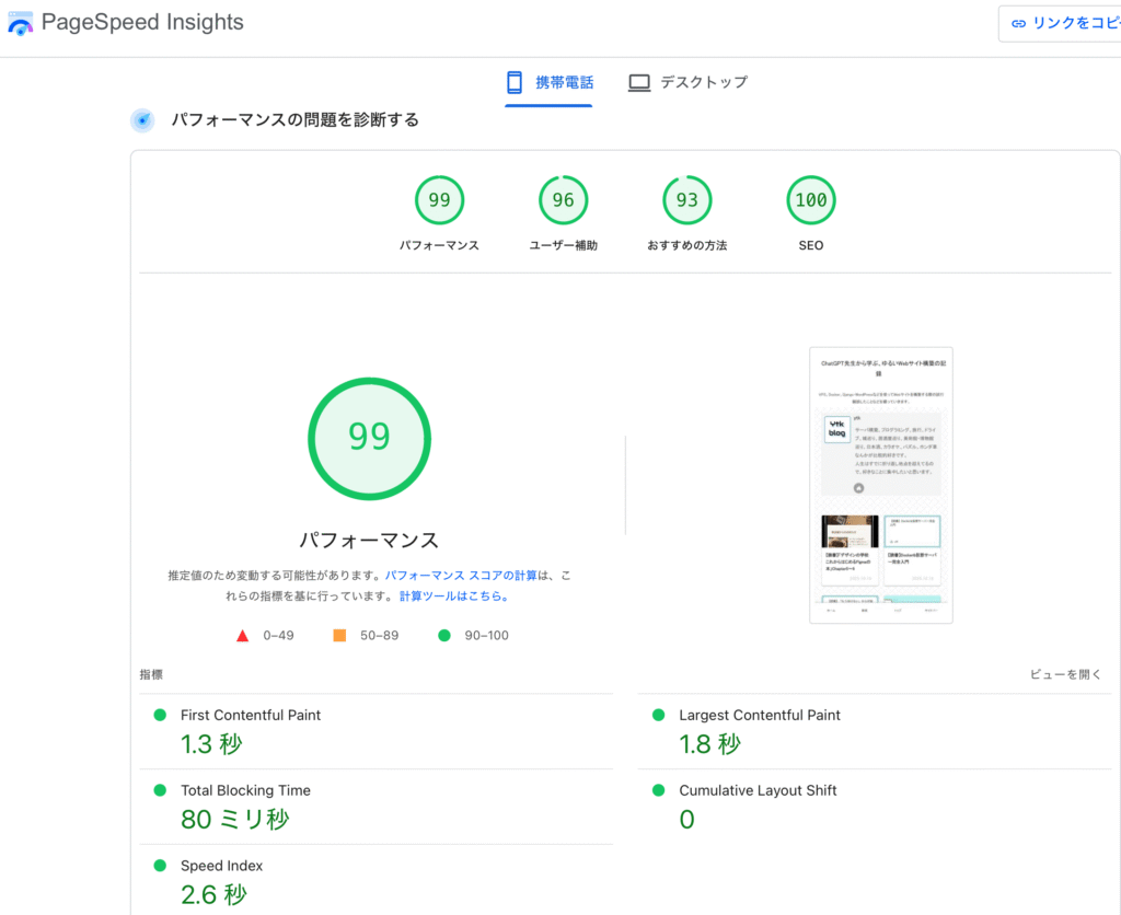 その後、再度PageSpeed Insightsでモバイルを計測。
